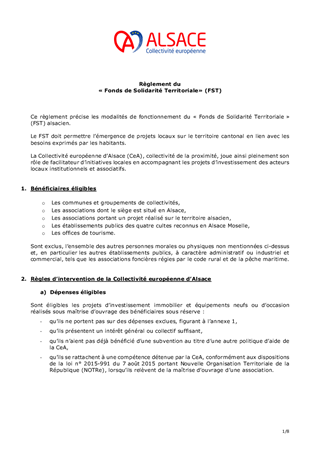 FONDS DE SOLIDARITE TERRITORIALE ADOPTION DU REGLEMENT ALSACIEN