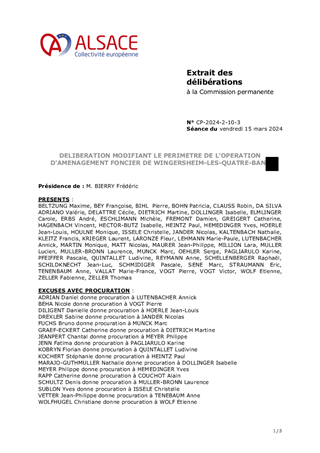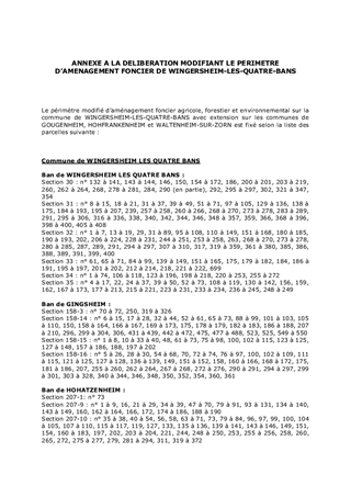 DELIBERATION MODIFIANT LE PERIMETRE DE L'OPERATION D'AMENAGEMENT FONCIER DE WINGERSHEIM-LES-QUATRE-BANS