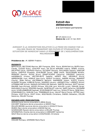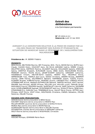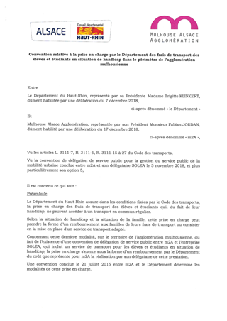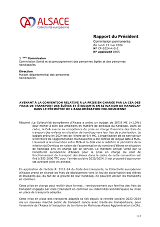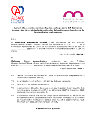 AVENANT À LA CONVENTION RELATIVE À LA PRISE EN CHARGE PAR LA CEA DES FRAIS DE TRANSPORT DES ÉLÈVES ET ÉTUDIANTS EN SITUATION DE HANDICAP DANS LE PÉRIMÈTRE DE L'AGGLOMÉRATION MULHOUSIENNE