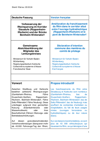 SIGNATURE D'UNE DECLARATION D'INTENTION EN FAVEUR DE L'AMÉLIORATION DU FRANCHISSEMENT DU RHIN ENTRE ROPPENHEIM-IFFEZHEIM ET BEINHEIM-WINTERSDORF