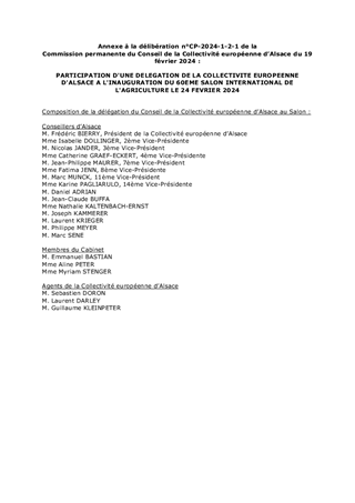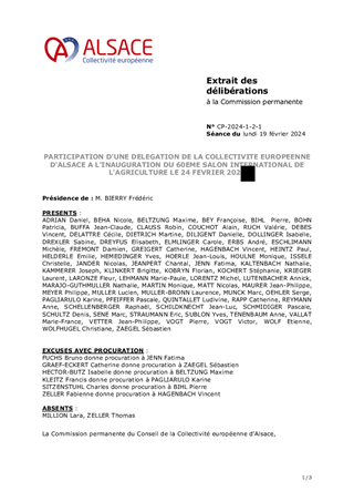 PARTICIPATION D'UNE DELEGATION DE LA COLLECTIVITE EUROPEENNE D'ALSACE A L'INAUGURATION DU 60EME SALON INTERNATIONAL DE L'AGRICULTURE LE 24 FEVRIER 2024
