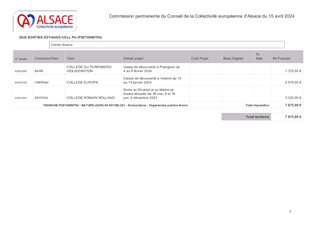 SUBVENTIONS DE FONCTIONNEMENT POUR 2024 AUX ÉCOLES ET AUX COLLÈGES ALSACIENS POUR LES CLASSES DE DÉCOUVERTE, VOYAGES SCOLAIRES, VISITES MÉMORIELLES