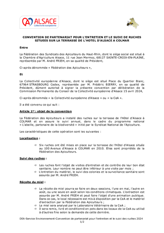 DES ABEILLES POUR LA BIODIVERSITE CONVENTION DE PARTENARIAT