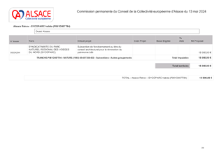 L'Alsace dispose de deux Parcs Naturels Régionaux sur les 54 que compte la France. Le cadre du partenariat entre la Collectivité européenne d'Alsace et les deux Parcs est défini par deux conventions d'objectifs partagés 2023-2025. Le rapport propose d'attribuer trois subventions au Parc Naturel Régional des Vosges du Nord (SYCOPARC) d'un montant total de 135 000 € pour l'année 2024 et une subvention de fonctionnement de 14 000 € au Parc Naturel Régional des Ballons des Vosges au titre du loyer du site d’accueil du Col de la Schlucht.