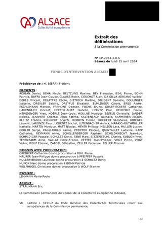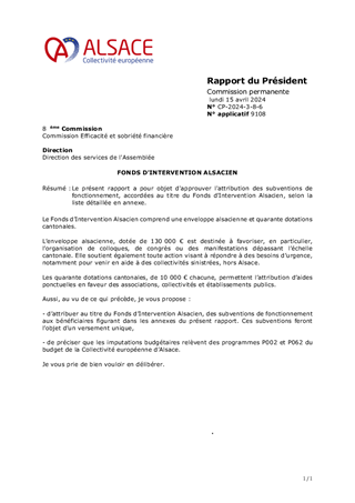 Le présent rapport a pour objet d'approuver l'attribution des subventions de fonctionnement, accordées au titre du Fonds d'Intervention Alsacien, selon la liste détaillée en annexe.