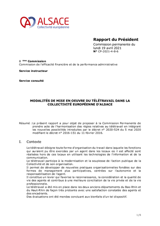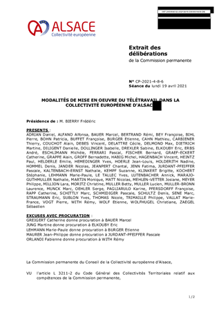 MODALITÉS DE MISE EN OEUVRE DU TÉLÉTRAVAIL DANS LA COLLECTIVITÉ EUROPÉENNE D'ALSACE