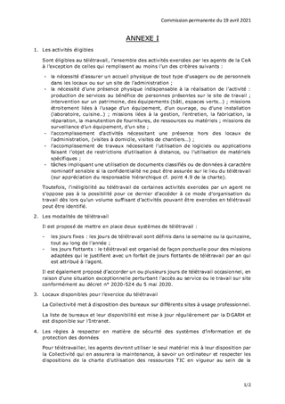Le présent rapport a pour objet de proposer à la Commission Permanente de prendre acte de l’harmonisation des règles relatives au télétravail en intégrant les nouvelles possibilités introduites par le décret n° 2020-524 du 5 mai 2020 modifiant le décret n° 2016-151 du 11 février 2016.
