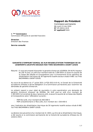 GARANTIE D'EMPRUNT DOMIAL SA HLM REHABILITATION THERMIQUE DE 30 LOGEMENTS LOCATIFS SOCIAUX RUE THÉO BACHMANN A SAINT-LOUIS
