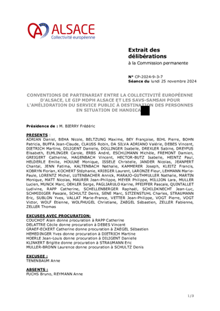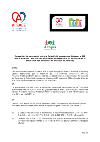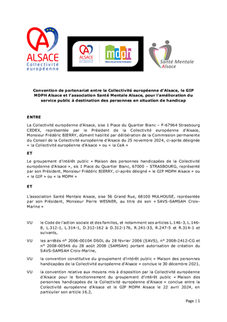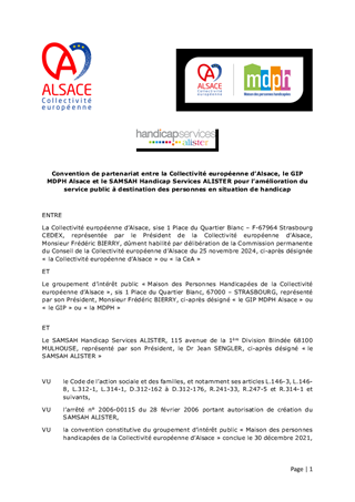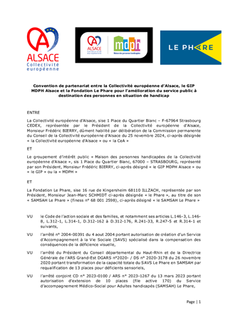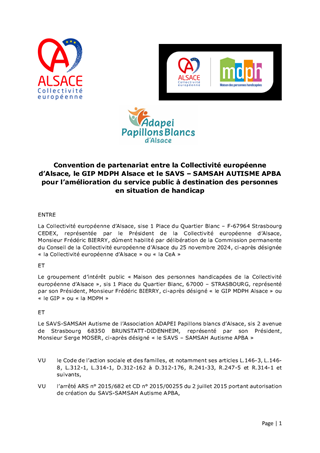 CONVENTIONS DE PARTENARIAT ENTRE LA COLLECTIVITÉ EUROPÉENNE D'ALSACE, LE GIP MDPH ALSACE ET LES SAVS-SAMSAH POUR L'AMÉLIORATION DU SERVICE PUBLIC À DESTINATION DES PERSONNES EN SITUATION DE HANDICAP