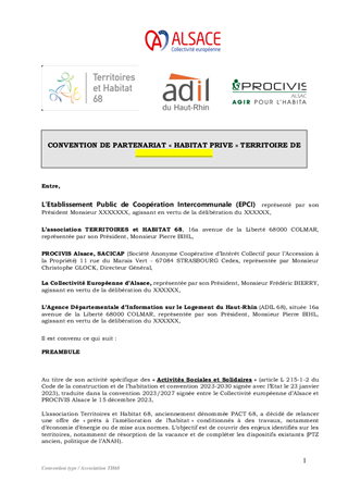 CONVENTION DE PARTENARIAT AVEC L'ASSOCIATION TERRITOIRES ET HABITAT 68