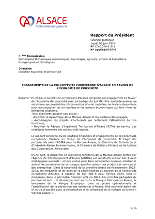 ENGAGEMENTS DE LA COLLECTIVITE EUROPEENNE D'ALSACE EN FAVEUR DE L'ECONOMIE DE PROXIMITE