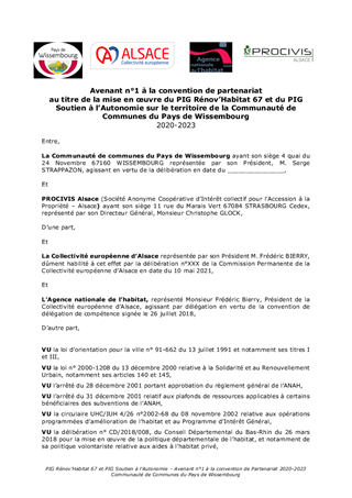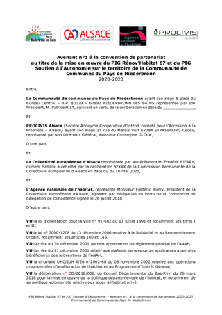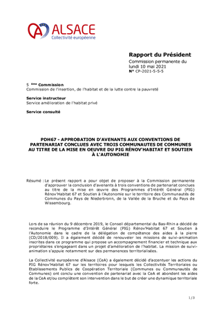 PDH67 - APPROBATION D'AVENANTS AUX CONVENTIONS DE PARTENARIAT CONCLUES AVEC TROIS COMMUNAUTES DE COMMUNES AU TITRE DE LA MISE EN OEUVRE DU PIG RÉNOV'HABITAT ET SOUTIEN À L'AUTONOMIE