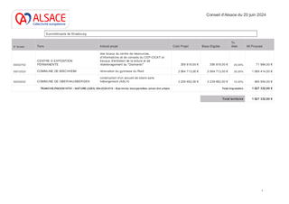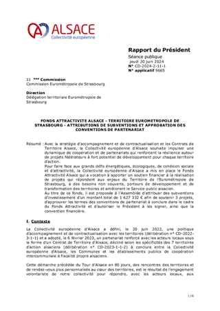Avec la stratégie d’accompagnement et de contractualisation et les Contrats de Territoire Alsace, la Collectivité européenne d'Alsace souhaite impulser une dynamique de coopération et de partenariats qui renforcent la résilience autour de projets fédérateurs à fort potentiel de développement pour chaque territoire d’action. Pour faire face aux grands défis énergétiques, écologiques, de cohésion sociale et d’attractivité, la Collectivité européenne d'Alsace a mis en place le Fonds Attractivité Alsace qui a vocation à apporter un soutien financier à la réalisation de projets qui répondent aux enjeux du Territoire de l’Eurométropole de Strasbourg, à des besoins non couverts, porteurs de développement et de transformation des territoires et améliorent le Service public alsacien. Au titre de ce fonds, il est proposée à l’Assemblée d’attribuer des subventions d’investissement d’un montant total de 1 627 332 € afin de soutenir 3 projets, d’approuver les termes des conventions de partenariat à conclure dans le cadre du Fonds Attractivité et d’autoriser le Président à les signer, ainsi que la convention financière.