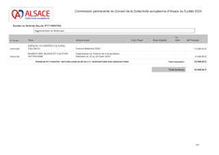 Ce rapport propose à la Commission Permanente de la Collectivité européenne d'Alsace d'agir pour le développement de la lecture à partir de diverses actions. Il s'agit, dans un premier temps, de consolider l'engagement citoyen dans les sites ouverts au public de la Bibliothèque d'Alsace, à Sarre-Union, Villé et Altkirch, par la mise en place d'une convention de bénévolat dans ces sites. En parallèle, le règlement intérieur de ces bibliothèques est proposé à la mise à jour (I). Il s'agit également de développer la lecture en intensifiant le soutien de la création littéraire, à travers la mise à jour du règlement du concours littéraire d'Alsace, pour sa 3ème édition à venir (II) et de soutenir les manifestations littéraires d'envergure (III).