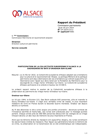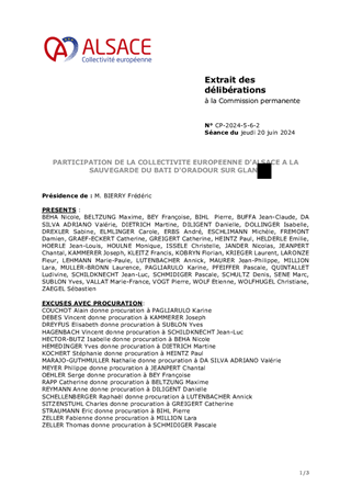 PARTICIPATION DE LA COLLECTIVITE EUROPEENNE D'ALSACE A LA SAUVEGARDE DU BATI D'ORADOUR SUR GLANE