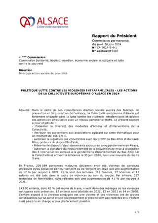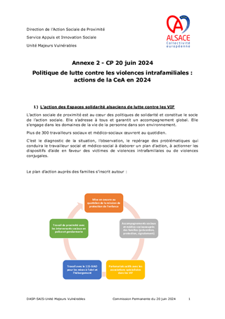 POLITIQUE LUTTE CONTRE LES VIOLENCES INTRAFAMILIALES - LES ACTIONS DE LA COLLECTIVITÉ EUROPÉENNE D'ALSACE EN 2024