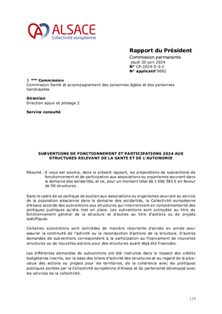 SUBVENTIONS DE FONCTIONNEMENT ET PARTICIPATIONS 2024 AUX STRUCTURES RELEVANT DE LA SANTE ET DE L'AUTONOMIE