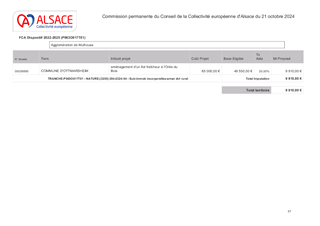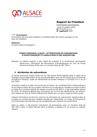 Le présent rapport a pour objet de proposer à la Commission permanente d'approuver l'attribution de subventions d'investissement au titre du Fonds Communal Alsace (FCA) pour un montant total de 487 794 €.