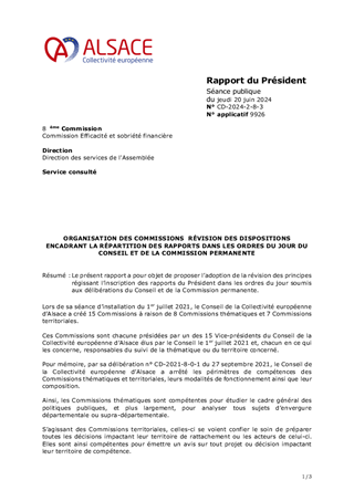 ORGANISATION DES COMMISSIONSRÉVISION DES DISPOSITIONS ENCADRANT LA RÉPARTITION DES RAPPORTS DANS LES ORDRES DU JOUR DU CONSEIL ET DE LA COMMISSION PERMANENTE
