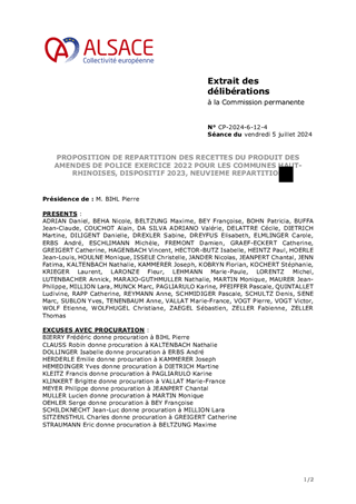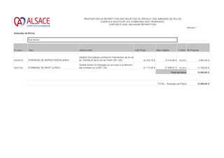 PROPOSITION DE REPARTITION DES RECETTES DU PRODUIT DES AMENDES DE POLICE EXERCICE 2022 POUR LES COMMUNES HAUT-RHINOISES, DISPOSITIF 2023, NEUVIEME REPARTITION
