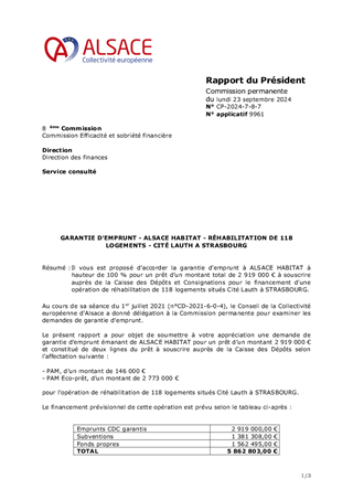 GARANTIE D'EMPRUNT - ALSACE HABITAT - RÉHABILITATION DE 118 LOGEMENTS - CITÉ LAUTH A STRASBOURG