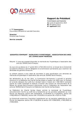 GARANTIE D'EMPRUNT - MAINLEVEE D'HYPOTHEQUE - ASSOCIATION DES AMIS DE L'EHPAD SAINT FRANCOIS