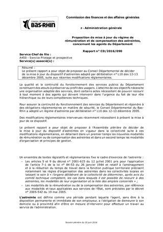 Le présent rapport a pour objet de proposer au Conseil Départemental de décider de la mise à jour du dispositif d'astreintes adopté par délibération n° L10 des 12-13 décembre 2005, suite aux récentes modifications réglementaires.