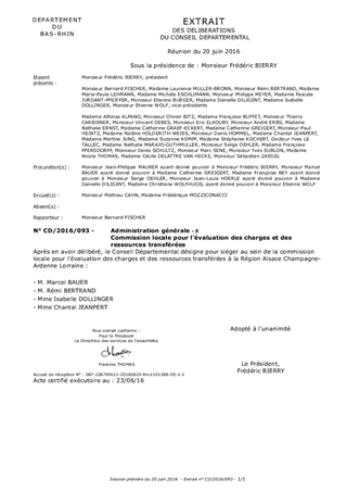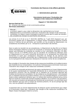 Le présent rapport a pour objet la désignation des représentants du Conseil Départemental à la Commission locale pour l'évaluation des charges et des ressources transférées à la Région Alsace Champagne-Ardenne Lorraine dans le cadre du transfert des compétences transport et planification des déchets.