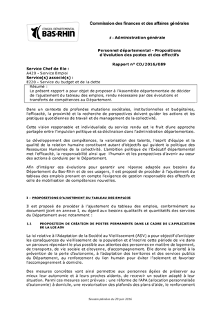 Le présent rapport a pour objet de proposer à l'Assemblée départementale de décider de l'ajustement du tableau des emplois, rendu nécessaire par des évolutions et transferts de compétences au Département.