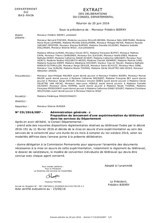 Le télétravail est une forme d’organisation du travail, utilisant les technologies de l’information et de la communication et dans laquelle les fonctions, qui auraient pu être réalisées dans les locaux de l’employeur, sont effectuées hors de ces locaux de manière régulière et volontaire. Le télétravail dans la fonction publique est prévu par l’article 133 de la loi Sauvadet 2012-347 du 12 mars 2012 et par le décret 2016-151 du 11 février 2016 relatif aux conditions et modalités de mise en œuvre du télétravail dans la fonction publique. Le présent rapport a pour objet de proposer à l’Assemblée plénière de décider de la mise en œuvre de l’expérimentation du télétravail dans les services du Département.