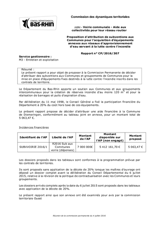 Le présent rapport a pour objet de proposer à la Commission Permanente de décider d'attribuer des subventions aux Communes et groupements de Communes pour la mise en place d’équipements fixes destinés à la lutte contre l’incendie inscrits dans les contrats de territoire.