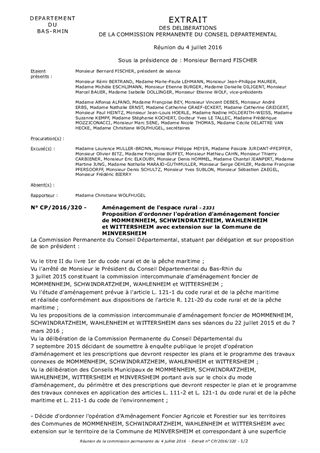 Proposition d'ordonner l'opération d'aménagement foncier de MOMMENHEIM, SCHWINDRATZHEIM, WAHLENHEIM et WITTERSHEIM avec extension sur la Commune de MINVERSHEIM