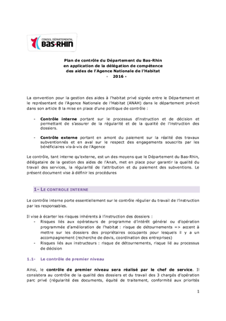 Le présent rapport a pour objet d'informer la Commission Permanente sur les modalités de mise en œuvre du plan de contrôle interne et externe relatif à la gestion des aides de l'Agence Nationale de l'Habitat (ANAH) déléguées au Département. L'élaboration et la validation de ce plan de contrôle sont demandées par l'instruction du 29 février 2012 de l'ANAH portant sur le contrôle.