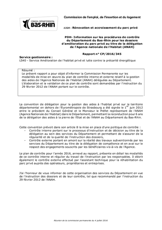 PDH- Information sur les procédures de contrôle du Département du Bas-Rhin pour les dossiers d’amélioration du parc privé au titre de la délégation de l'Agence nationale de l'Habitat (ANAH)
