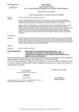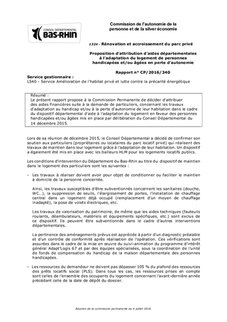 Le présent rapport propose à la Commission Permanente de décider d'attribuer des aides financières suite à la demande de particuliers, concernant les travaux d'adaptation au handicap et/ou à la perte d'autonomie de leur habitation dans le cadre du dispositif départemental d'aide à l'adaptation du logement en faveur des personnes handicapées et/ou âgées mis en place par délibération du Conseil Départemental du 14 décembre 2015.