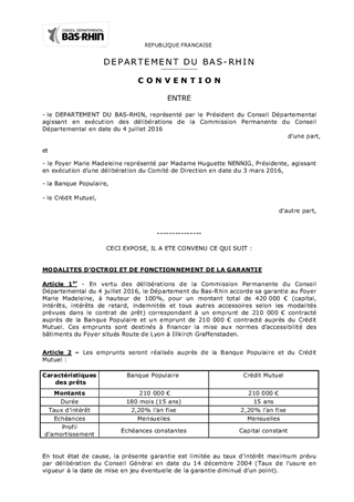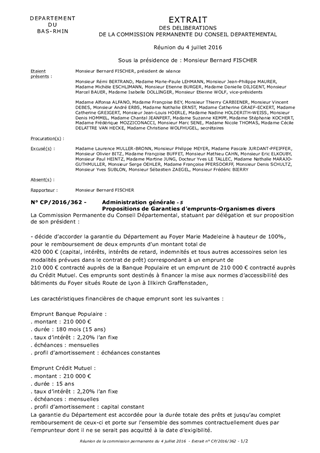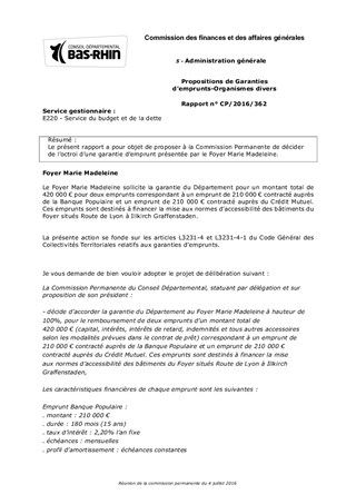 Le présent rapport a pour objet de proposer à la Commission Permanente de décider de l’octroi d’une garantie d’emprunt présentée par le Foyer Marie Madeleine.