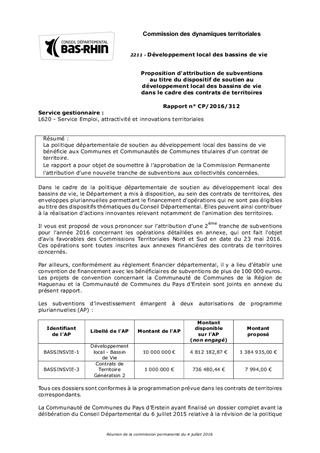 La politique départementale de soutien au développement local des bassins de vie bénéficie aux Communes et Communautés de Communes titulaires d'un contrat de territoire. Le rapport a pour objet de soumettre à l’approbation de la Commission Permanente l'attribution d'une nouvelle tranche de subventions aux collectivités concernées.