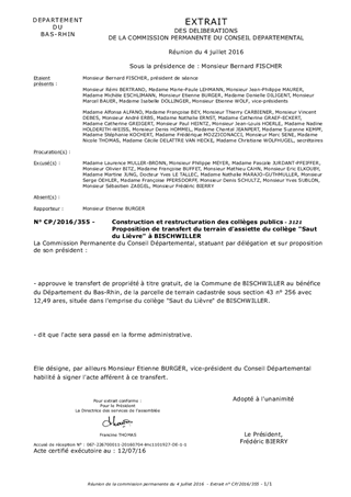 Proposition de transfert du terrain d'assiette du collège "Saut du Lièvre" à BISCHWILLER