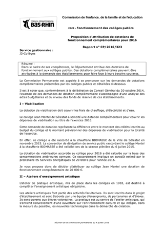 Proposition d'attribution de dotations de fonctionnement complémentaires pour 2016