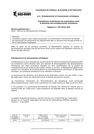 Le présent rapport a pour objet de proposer à la Commission Permanente de décider de l'attribution de subventions du Département dans le domaine des enseignements et de la transmission artistiques.