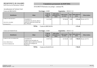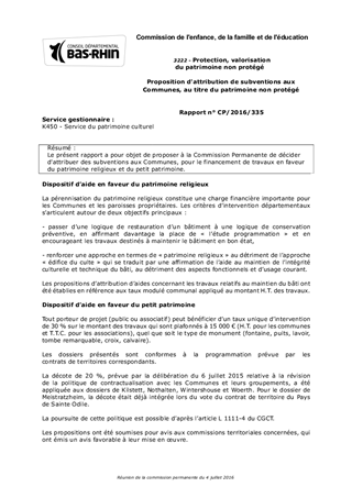 Le présent rapport a pour objet de proposer à la Commission Permanente de décider d'attribuer des subventions aux Communes, pour le financement de travaux en faveur du patrimoine religieux et du petit patrimoine.