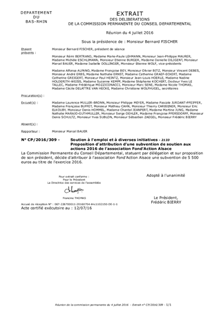 Le présent rapport a pour objet de proposer à la Commission Permanente du Conseil Départemental de décider de l'attribution d'une subvention à l'association Fond'Action Alsace au titre de l'exercice 2016.
