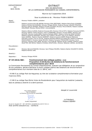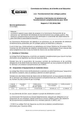 Le présent rapport a pour objet de proposer à la Commission Permanente de se prononcer sur l'attribution de dotations de fonctionnement aux collèges publics. Des dotations complémentaires peuvent être attribuées à la demande des établissements pour faire face à leurs besoins courants.