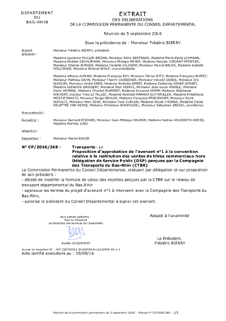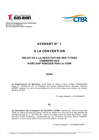 Proposition d'approbation de l'avenant n°1 à la convention relative à la restitution des ventes de titres commerciaux hors Délégation de Service Public (DSP) perçues par la Compagnie des Transports du Bas-Rhin (CTBR)