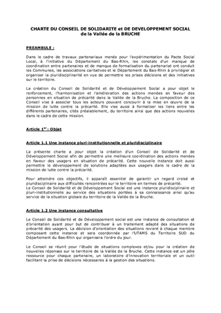 Proposition de signature d'une Charte portant création d'un Conseil de Solidarité et de Développement Social de la Vallée de la Bruche
