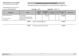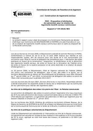 Le présent rapport a pour objet de proposer à la Commission Permanente de décider d’attribuer aux Communes de WOLFSKIRCHEN et HOFFEN une aide financière en vue de la création de logements locatifs sociaux communaux dans le cadre du dispositif de la PALULOS communale.