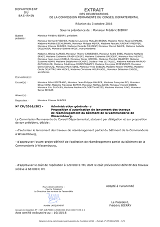 Le rapport a pour objet de proposer à la Commission Permanente de décider d'autoriser le lancement des travaux de réaménagement du bâtiment de la Commanderie à Wissembourg et de décider de valider l’Avant-Projet Définitif en vue de travaux d’aménagement de la Commanderie à Wissembourg.