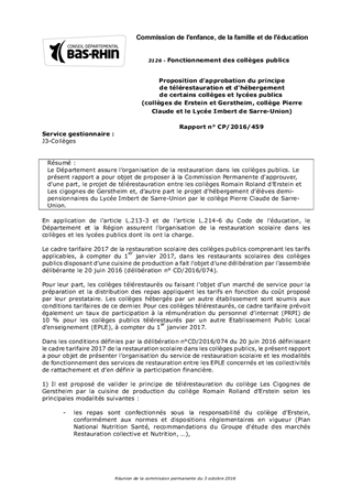 Proposition d'approbation du principe de télérestauration et d'hébergement de certains collèges et lycées publics (collèges de Erstein et Gerstheim, collège Pierre Claude et le Lycée Imbert de Sarre-Union)