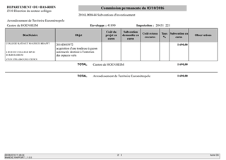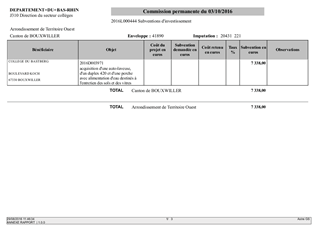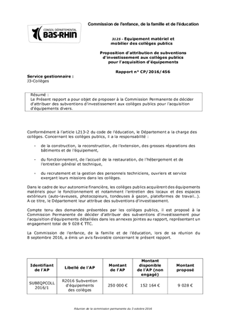 Le Présent rapport a pour objet de proposer à la Commission Permanente de décider d'attribuer des subventions d'investissement aux collèges publics pour l'acquisition d'équipements divers.