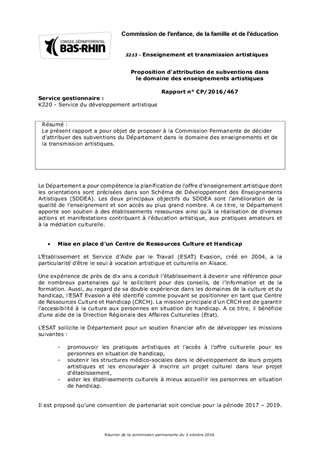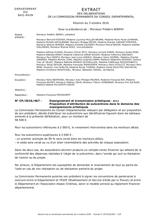 Le présent rapport a pour objet de proposer à la Commission Permanente de décider d'attribuer des subventions du Département dans le domaine des enseignements et de la transmission artistiques.